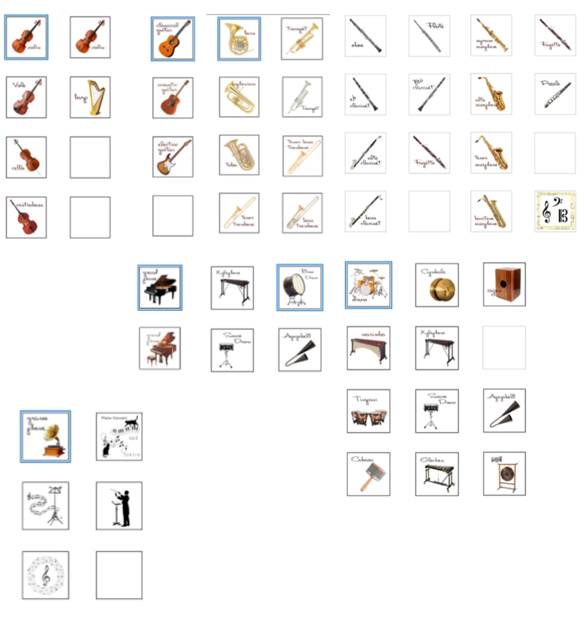 プレゼントや記念品などに喜ばれる楽器プリントアイシングクッキー。1枚からご注文OKです。コンサート、吹奏楽、ライブなどの贈り物にも♪ 色々な楽器の組み合わせが可能です。