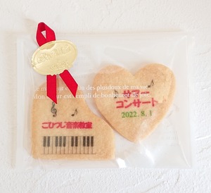 発表会などの記念品に最適♪お教室名やコンサート名、日付、メッセージなどの文字入れができる、オリジナルクッキーギフトです。